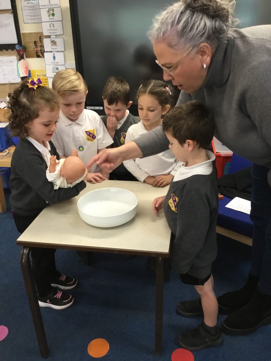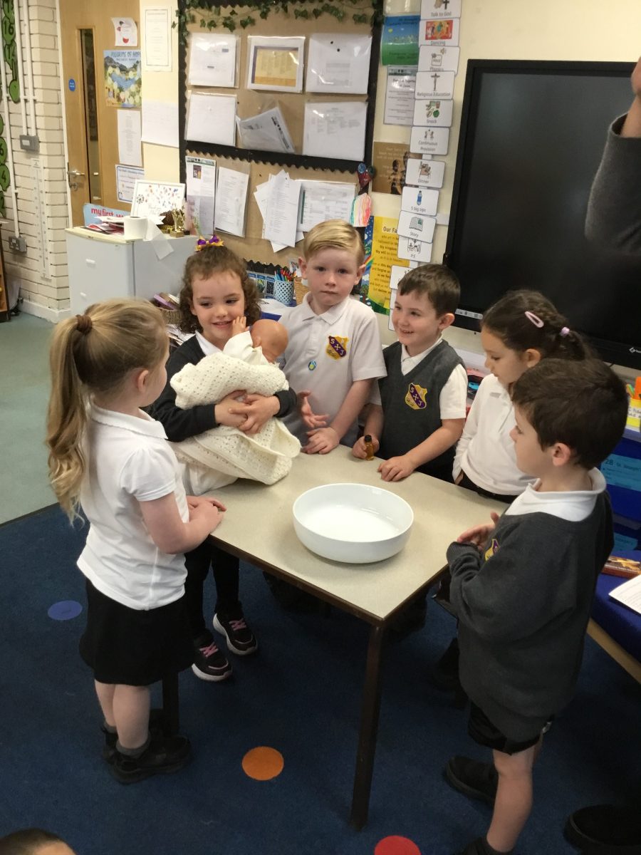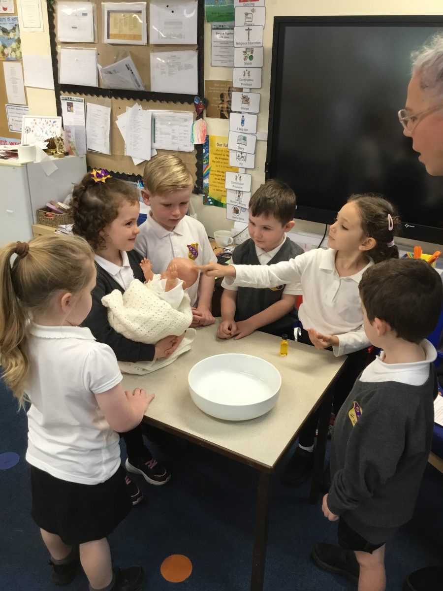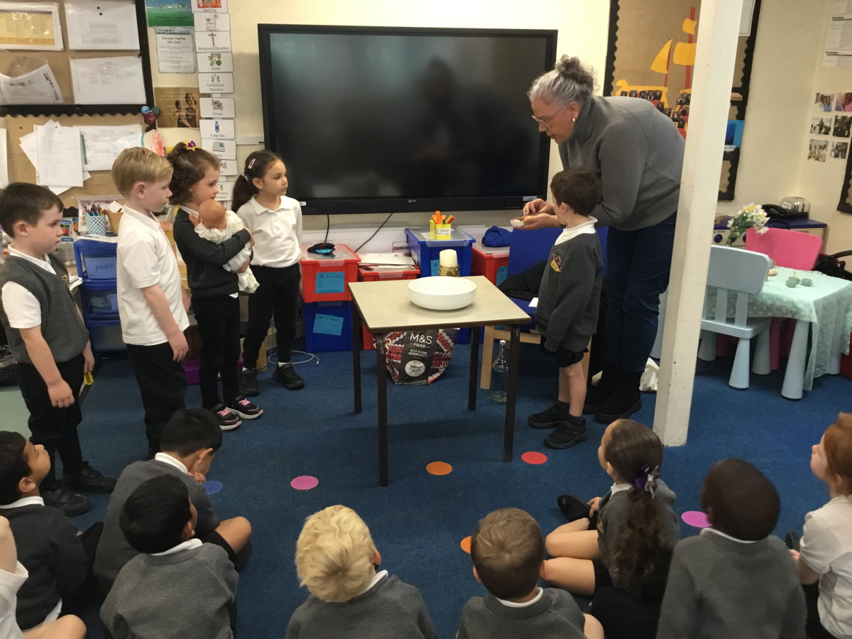 This term, the children have been exploring the meaning of belonging through the beautiful sacrament of baptism. Together, we’ve looked at the special symbols and signs that show we are part of God’s family. The children proudly brought in photographs of their own baptisms, which sparked wonderful conversations and memories. Today, we were blessed with a very special visitor, Christine Ball from the parish church, who led a heartfelt and joyful role-play of a baptism with our Reception class. The children were fully engaged, sharing their understanding with such enthusiasm, and Christine was truly touched by their knowledge and warmth. It was a memorable experience filled with love and a deep sense of togetherness.