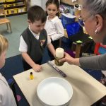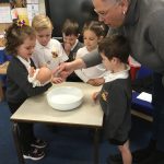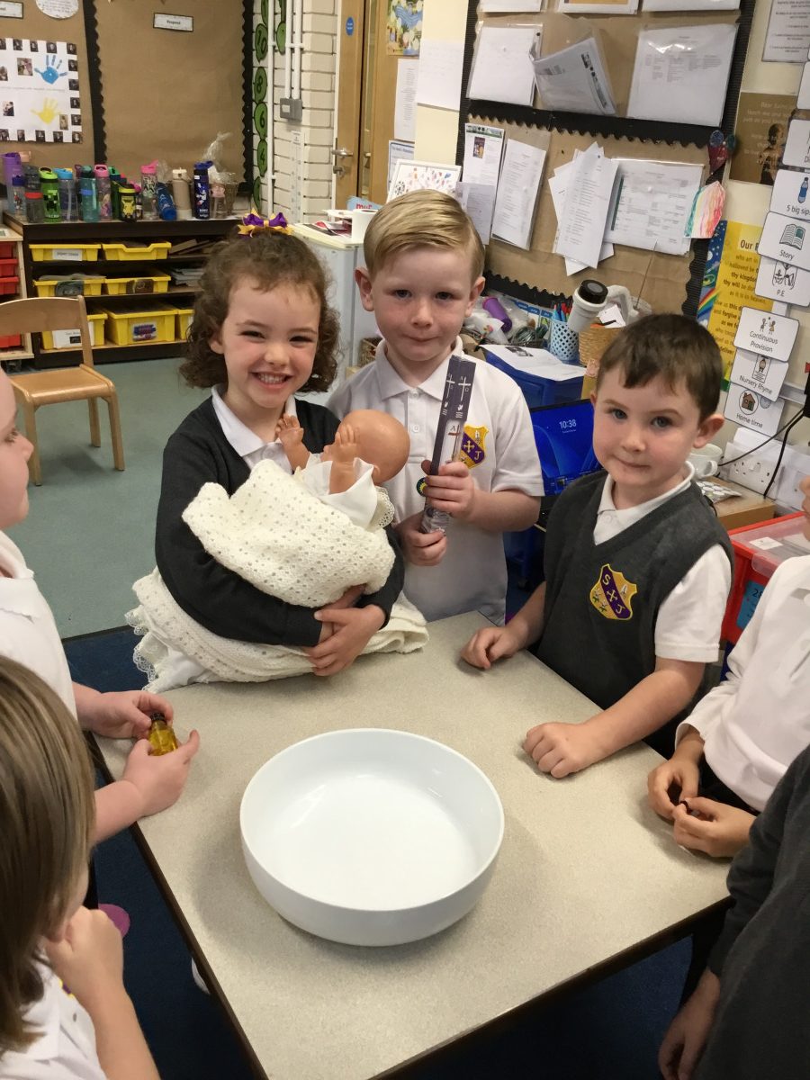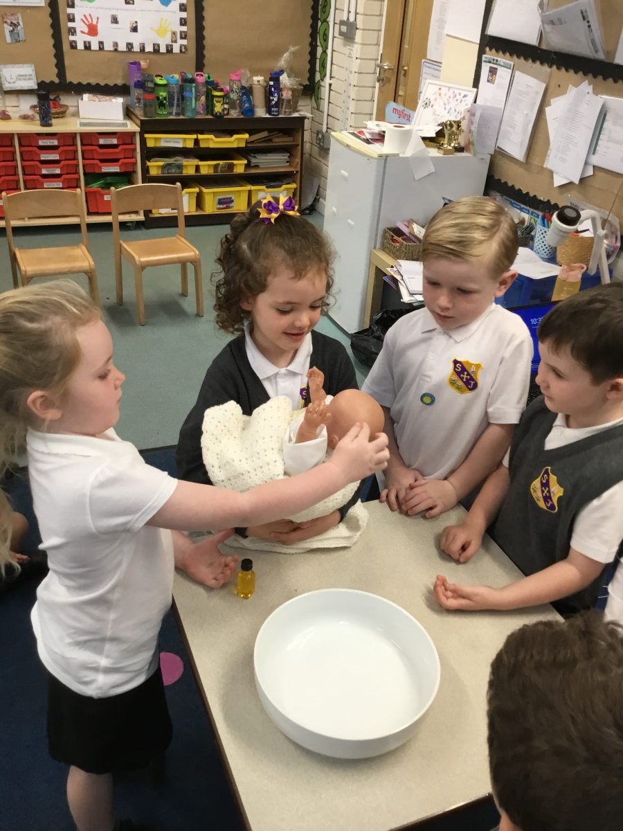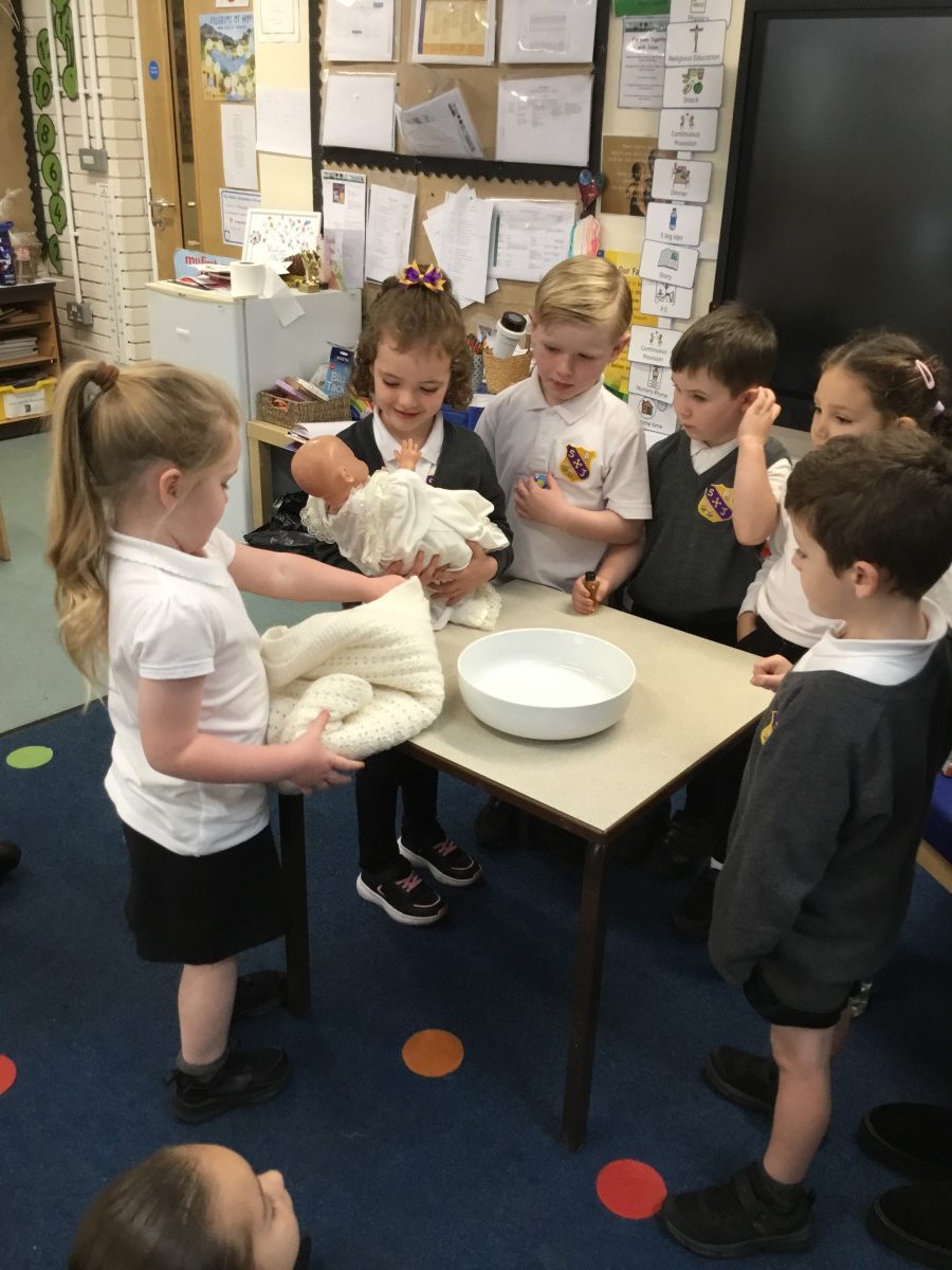 This term, the children have been exploring the meaning of belonging through the beautiful sacrament of baptism. Together, we’ve looked at the special symbols and signs that show we are part of God’s family. The children proudly brought in photographs of their own baptisms, which sparked wonderful conversations and memories. Today, we were blessed with a very special visitor, Christine Ball from the parish church, who led a heartfelt and joyful role-play of a baptism with our Reception class. The children were fully engaged, sharing their understanding with such enthusiasm, and Christine was truly touched by their knowledge and warmth. It was a memorable experience filled with love and a deep sense of togetherness.
