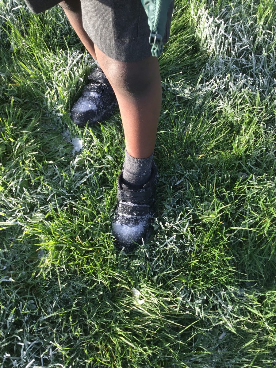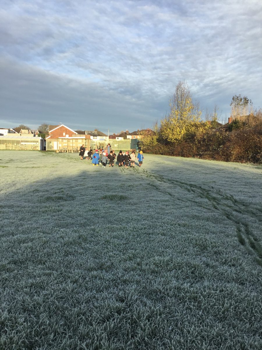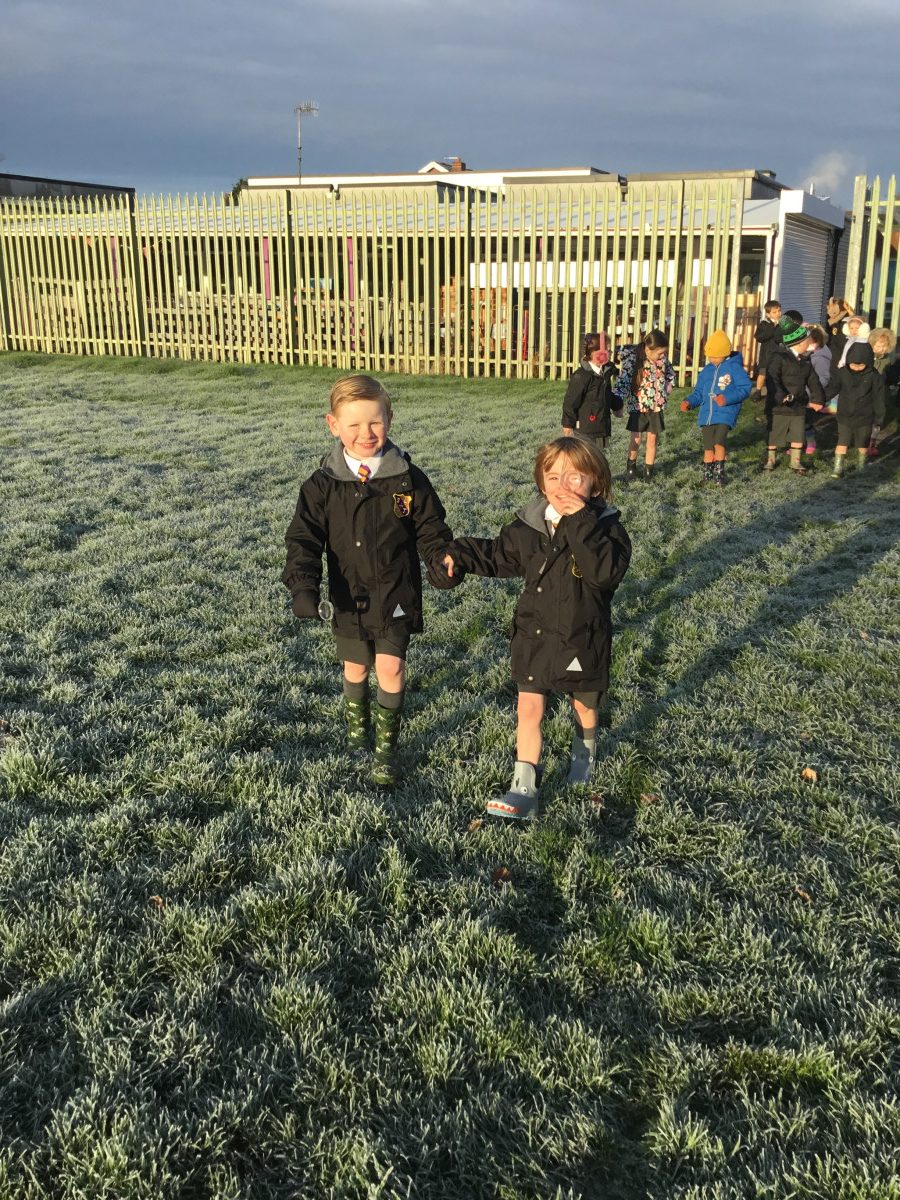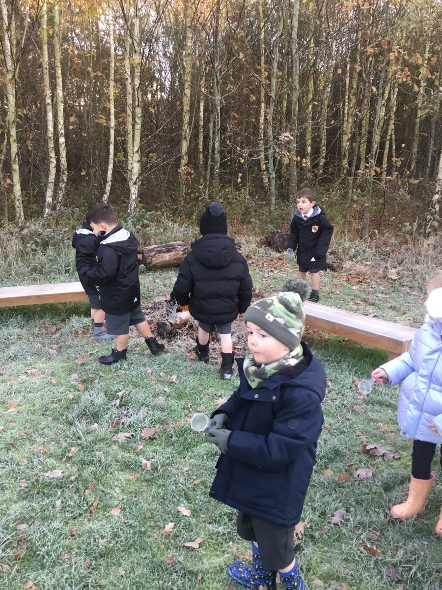 Today we went on a cold, frosty mini-beast hunt! The ground was sparkling with ice, and we talked about how the weather is changing and how the temperature drops when it gets colder. The children learned that when it gets really cold, things like grass and water can freeze.