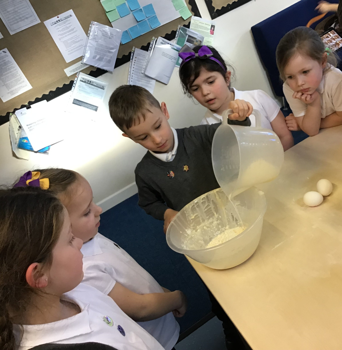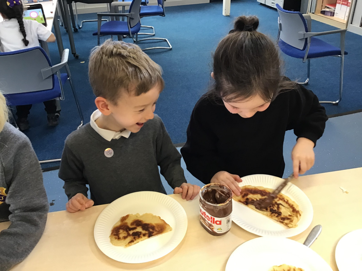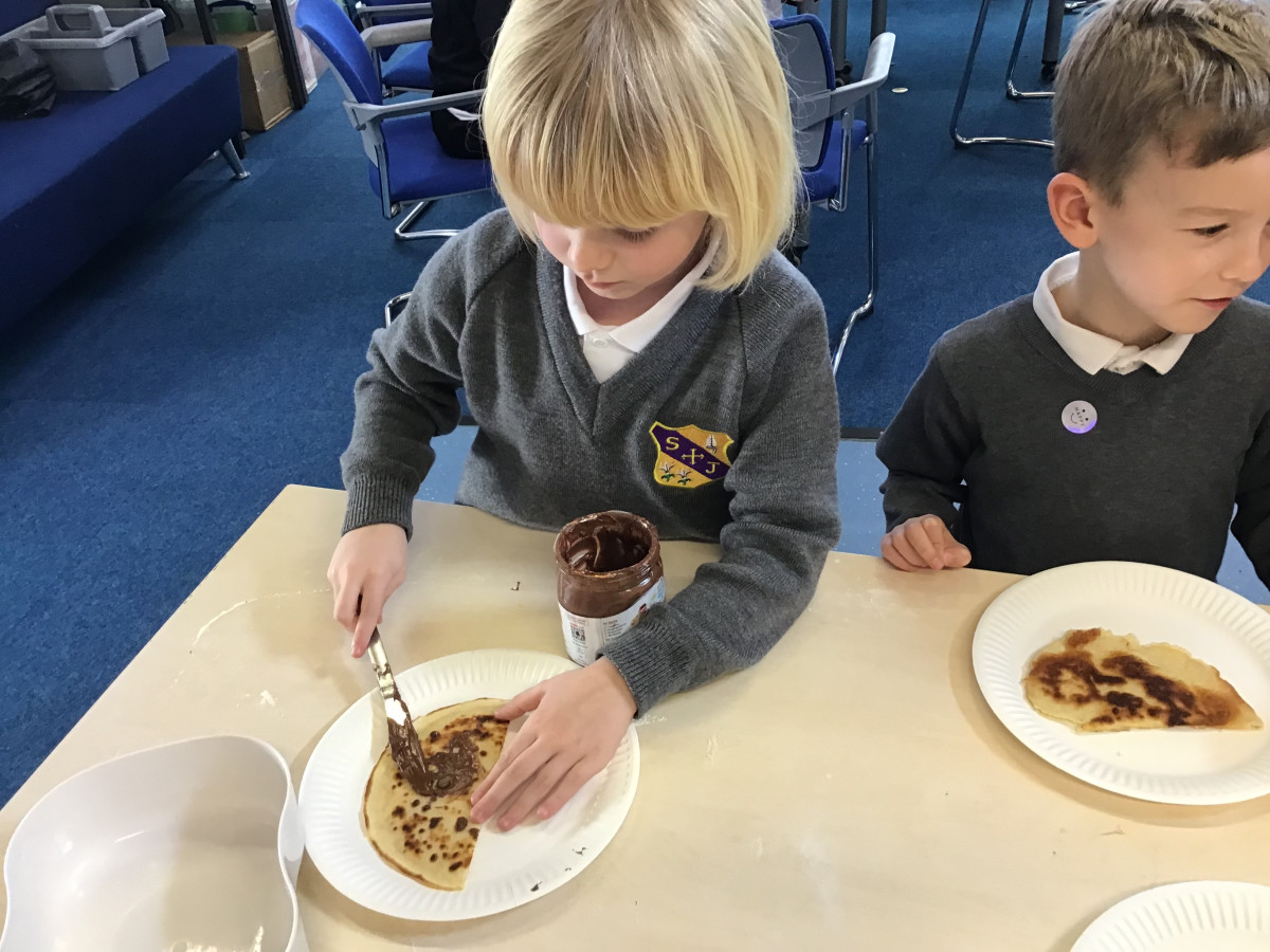 Year 1 children loved making pancakes for Shrove Tuesday. They worked as a team to make delicious pancakes!