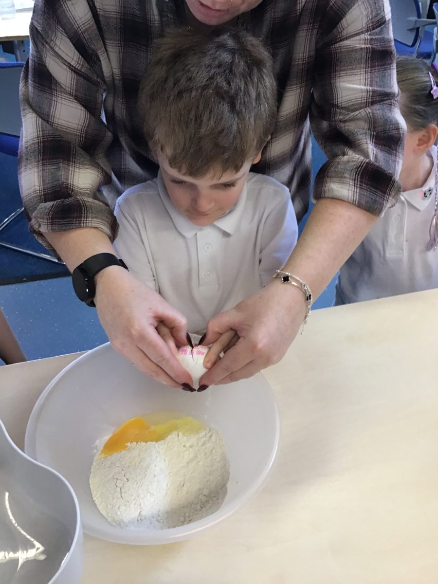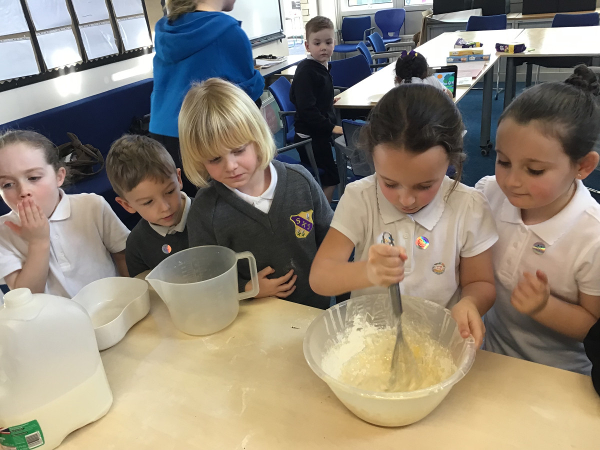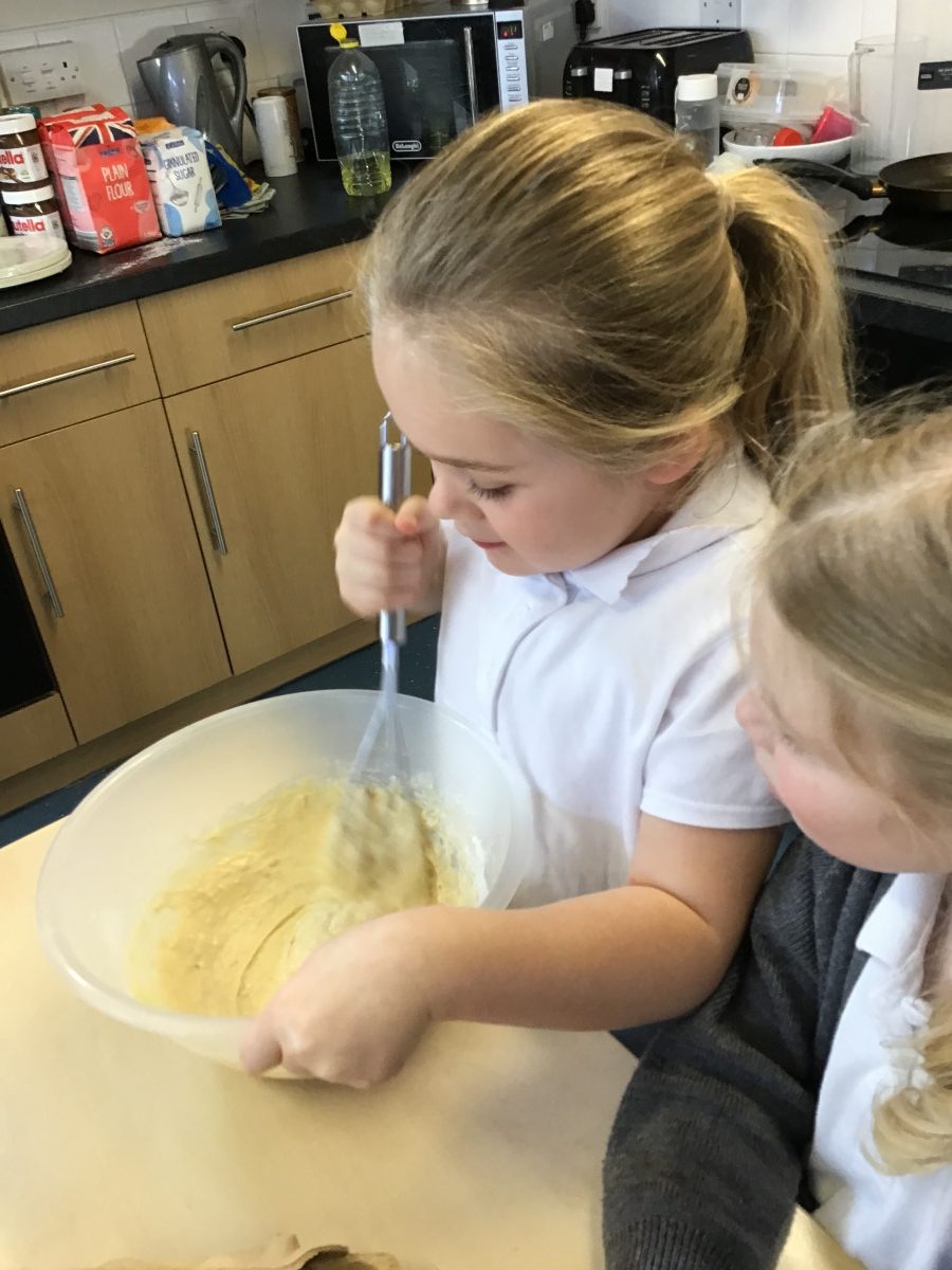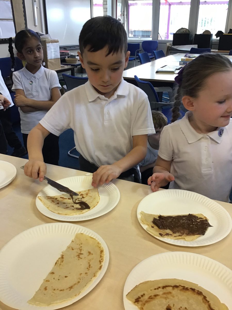 Year 1 children loved making pancakes for Shrove Tuesday. They worked as a team to make delicious pancakes!